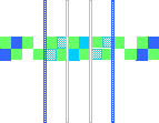 • Start to knot the patern described below 4 times.• 1 Straight• Add in 1 Straight 1 glitter Yellow in the middel. • Cut away the metal strand.. • 1 round. • split up the tongue. Use the middel glitter Yellow as weave strand for the two sides. • Knot the patern below for each sithe off the tongue. • 3 round• Go to the paragraph "Head upperside" |